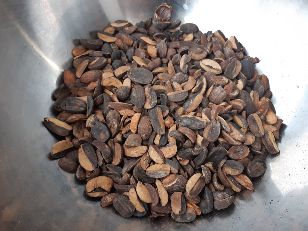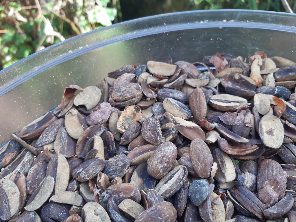 First you have to collect acorns. Loads of acorns. And then cut them open – the easiest way is to use the secateurs. If you let the acorns dry for a few days, the acorn will shrink a little and peeling will be easier. Otherwise the acorn sticks too much to the shell and is very difficult to remove. Now separate the good from the bad ones and throw away the shells. The good ones are light in color, the bad ones can be moldy or black. Sometimes they changed color just because they are a little older. Nevertheless, if you’re not sure, throw it away.